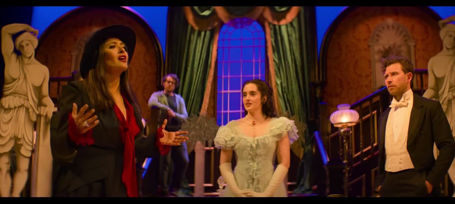 We are introduced to a new cast of doe-eyed performers, each dawning rippling pectorals, but no personality stands out. They weren’t meant for that. In truth, LAST DANCE is only interested in the love story brewing between Tatum’s Mike and Selma Hayek’s Maxandra, a rich heiress with lots of money and a struggling stage show.